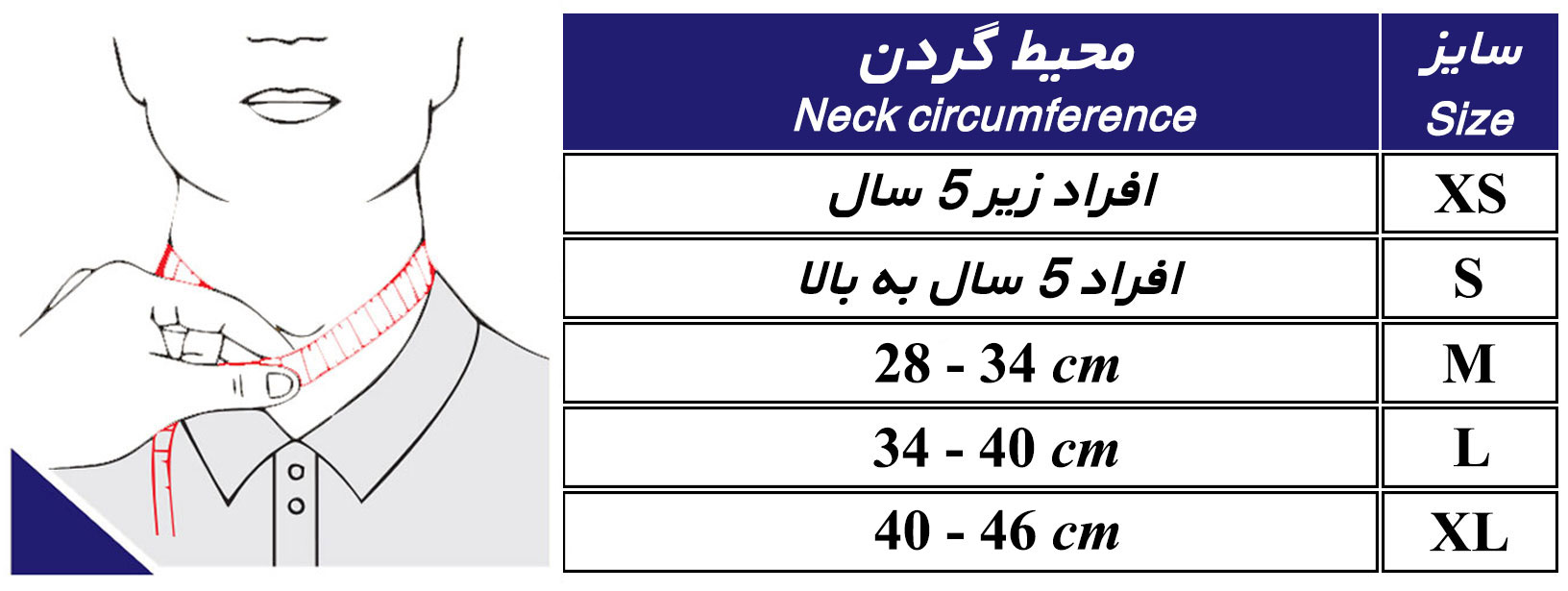 هنگام بستن گردنبند دقت نمایید تا قسمت چانهای آن زیر چانه قرار بگیرد و از درست بستن وسیله مطمئن شوید.
