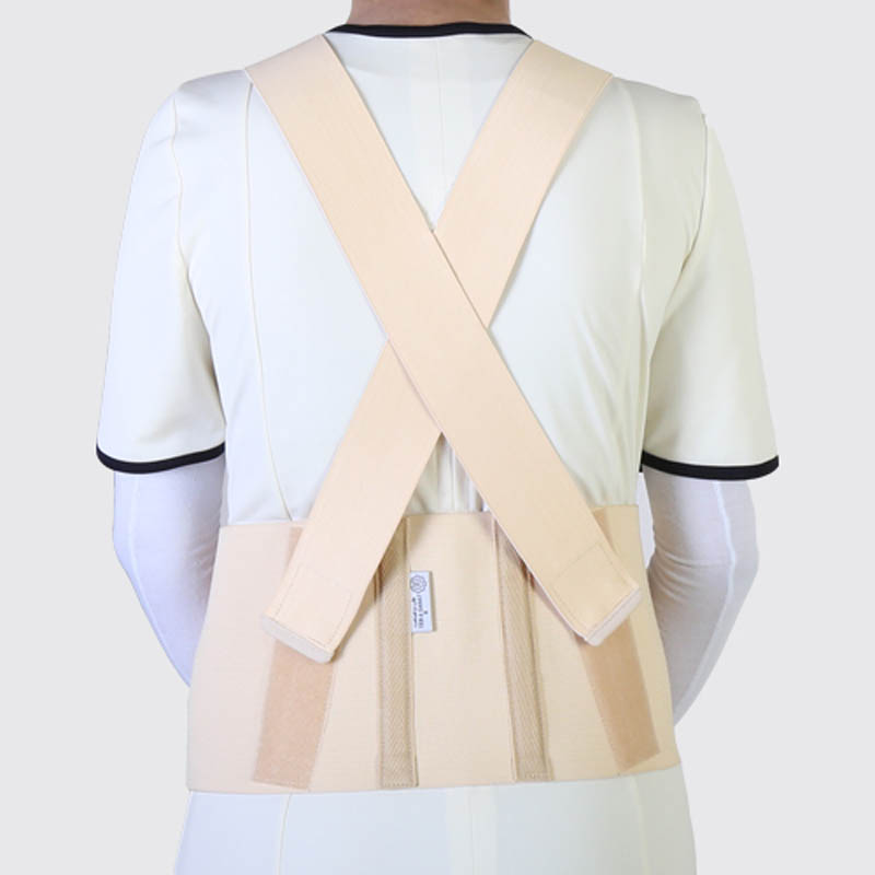 دو تسمه فنری پلاستیکی در قسمت پشتی کمربند موجب کاهش فشار بر روی مهره های کمری می شود. (دقت نمایید پس از بستن شکم بند این تسمه ها به صورت قرینه نسبت به خط وسط ستون فقرات قرار گرفته باشد.)