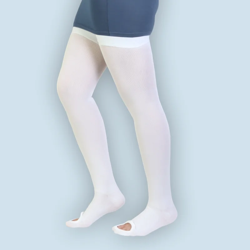 جورابهای ضد آمبولی در دو مدل زیر زانو و بالای زانو برای پیشگیری از لخته شدن خون در عروق اندام تحتانی و پیشگیری از واریس استفاده میشود.