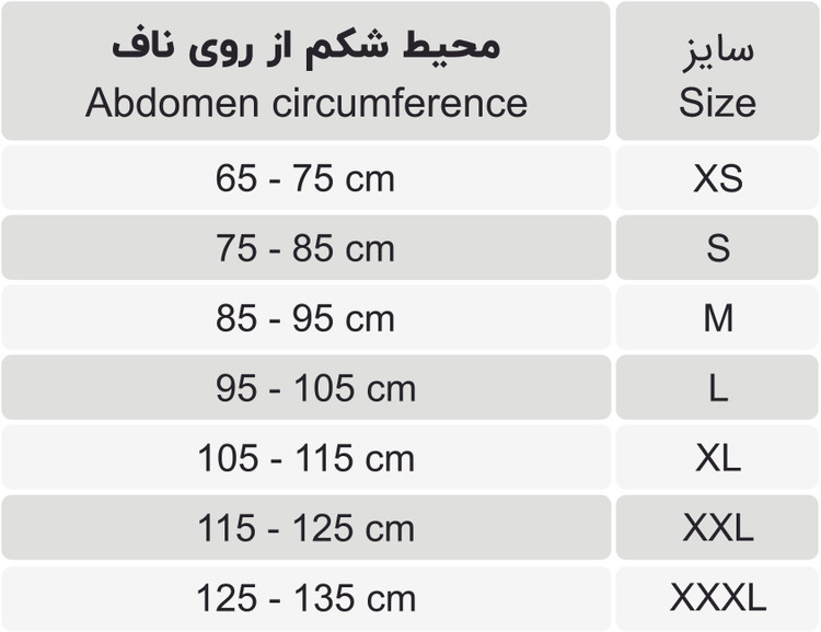 در انتخاب سایز متناسب بر اساس دور کمر بیمار دقت نمایید.