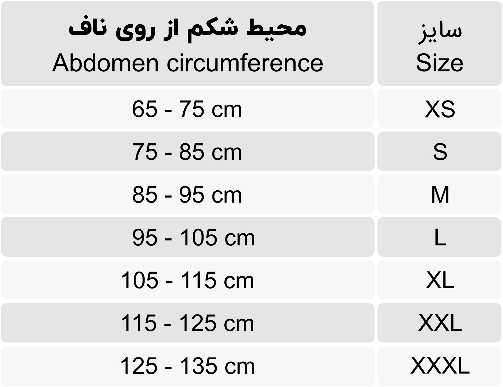 در انتخاب سایز متناسب بر اساس دور کمر بیمار دقت نمایید.