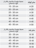محیط عضو آسیب دیده را از 5 سانتیمتر بالاتر از جایی که از گچ یا پانسمان پوشیده شده با متر پارچهای اندازهگیری کرده، سپس بر اساس جدول ضمیمه سایز مناسب را انتخاب نمایید.