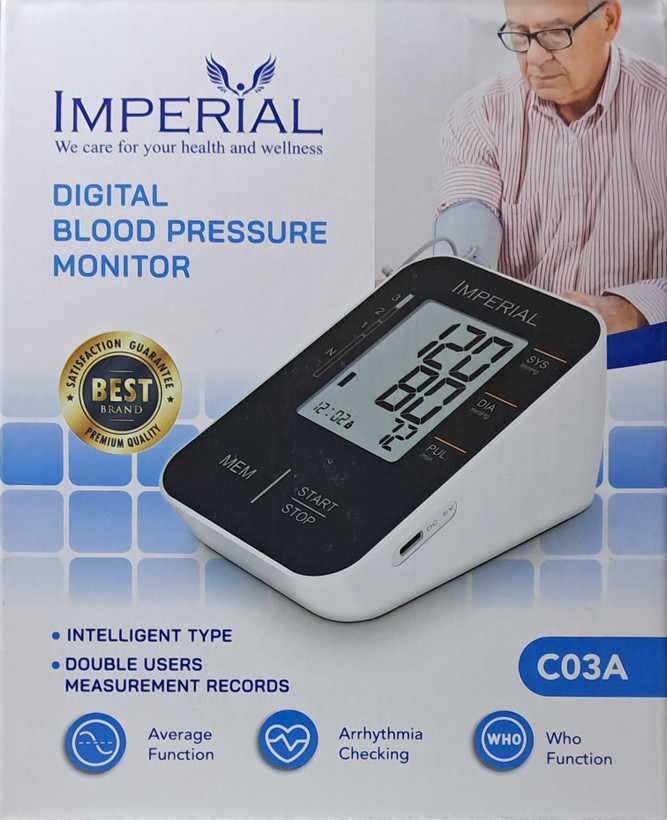 فشارسنج دیجیتالی امپریال کدC0A3 برای استفاده خانگی و روزمره طراحی شده است. این دستگاه با عملکرد تمامخودکار، به ویژه برای افراد سالمند یا کسانی که تجربه استفاده از فشارسنج را ندارند، بسیار کاربردی است.